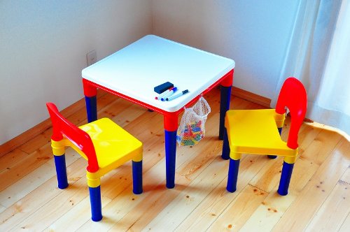 테이블과 의자가 2각세트가 되 있으므로 친구와 형제와 의자가 맞잡아 등 하지 않아도 언제라도 사이가 좋아 놀거나,간식을 먹거나 나와 옵니다.블럭100피스와 수납대부.