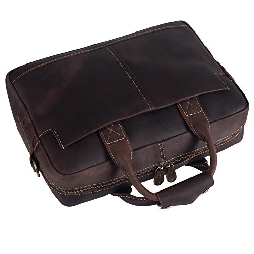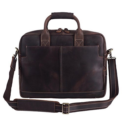 -. Brand : polare -. Department : mens -. Feature : Made from Genuine Thick Cowhide Leather for a professional and trendy appearance. / Strong stitching handcrafted by professional artisans for long lasting durability / Laptop Padding fits 16-17 inch laptop for business travel. / Soft Shoulder Strap and Handle for easy, comfortable transport.Pockets of various sizes for accessories / Dimensions: Length 16.9"(43cm) x Width 4.3"(11cm) x Height 11.8"(30cm) - Handle approx. 3 inches. -. ProductGroup : Apparel -. ProductTypeName : LAGE -. Title : Polare Men's Thick Authentic Leather Laptop Bag Briefcase ¡