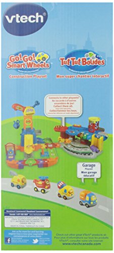 -. Binding : Toy -. Brand : VTech -. EAN : 3417761466001 -. Feature : Toy construction playset combines learning and pretend play / Fun role-play features include a rotating crane, weight station, cargo loader and more / SmartPoint vehicles repsond to 6 SmartPoint locations with fun phrases, music and sound effects / Includes one SmartPoint Dump Truck that teaches the letter "D" through pretend play / Includes 15 track pieces -. IsAdultProduct : 0 -. ItemPartNumber : 80146600 -. Label : V Tech -. Manufacturer : V Tech -. Model : 80-146600 -. MPN : 80146600 -. PackageQuantity : 1 -. PartNumber : 80146600 -. ProductGroup : Toy -. ProductTypeName : TOYS_AND_GAMES -. Publisher : V Tech -. Studio : V Tech -. Title : VTech Go! Go! Smart Wheels- Construction Playset -. UPC : 400948054934 -. Warranty : No Warranty