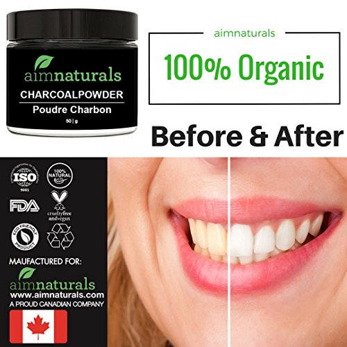 Free From Harmful Chemicals. 100% Vegan and Non-Abrasive That Is Good For Your Gums and Teeth. No hardwood material used to keep gums healthy. aimnaturals is a Proud Canadian Company Bringing Organic Back. aimnaturals Activated Coconut Charcoal Powder is the best way to whiten your teeth naturally. Derived from the highest-quality coconut sources, our activated charcoal is safe to use on your teeth and easy on your gums. Naturally whitens your teeth
