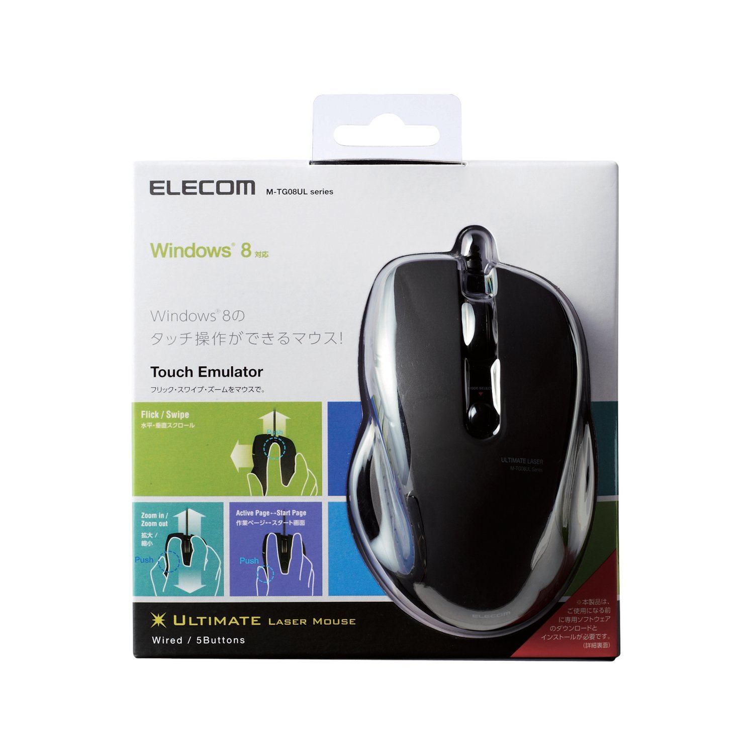 ■ It is ULTIMATE laser mouse for Windows 8 which can perform touch operation of Windows 8, such as flick, swipe, zoom.