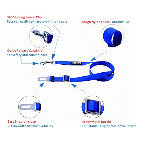 -. Title : Hapito Pet Cat Dog Seat Belt, Adjustable (22 to 37 Inch) Genuine Nylon Safety Belt, Car Vehicle Seatbelt Harness Leash for Dogs Cats