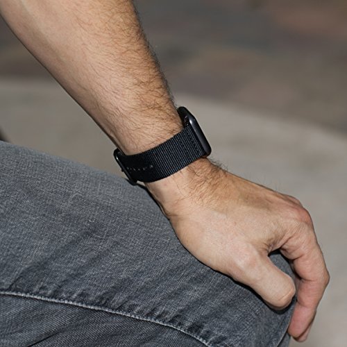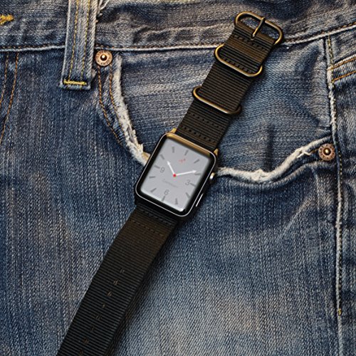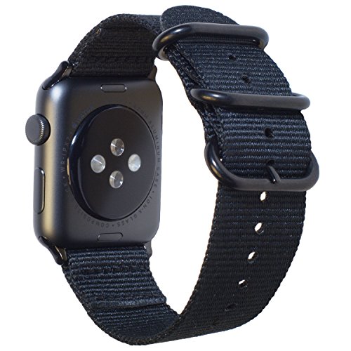 Apple Watch Band 42mm Black Woven NYLON NATO iWatch Band Replacement Wrist Straps with Space Black Classic Buckle, Adapters and Zulu Rings for New Apple Watch Series 2 and Series 1 by Carterjett