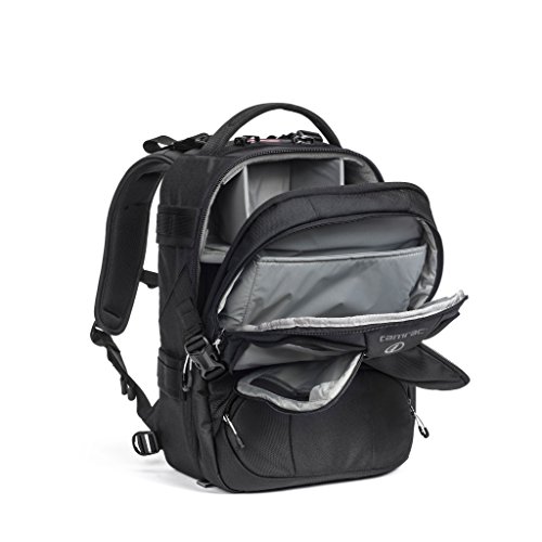 -. Binding : Electronics -. Brand : Tamrac -. Feature : Large main opening that holds pro-sized DSLRs and lenses and accessories, lightweight design maximizes gear protection and keeps weight down / Comfortable airflow harness system including removable Arc and M.O.L.L.E. compatible belt system / Fits in the overhead compartment of most commercial aircraft worldwide (check with your carrier for detailed carry on restrictions) / Front butterfly accessory pockets hold small personal items, Side Arc attachment points hold M.A.S. and S.A.S. components and a variety of other accessories including M.O.L.L.E. / Protective Laptop Compartment holds up to 15 inch laptops, foam dividers are fully customizable for your gear -. PackageQuantity : 1 -. ProductGroup : CE -. ProductTypeName : CAMERA_BAGS_AND_CASES -. Title : Tamrac Anvil 17 Photo/Laptop Backpack with Belt (Black)