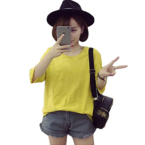 -. Title : (シンイ)Xin Yi レディース コットン tシャツ 女性 Tシャツ ラウンドネック シンプル 半袖 無地 春 夏 ゆったり カジュアル 大きいサイズ ファッション
