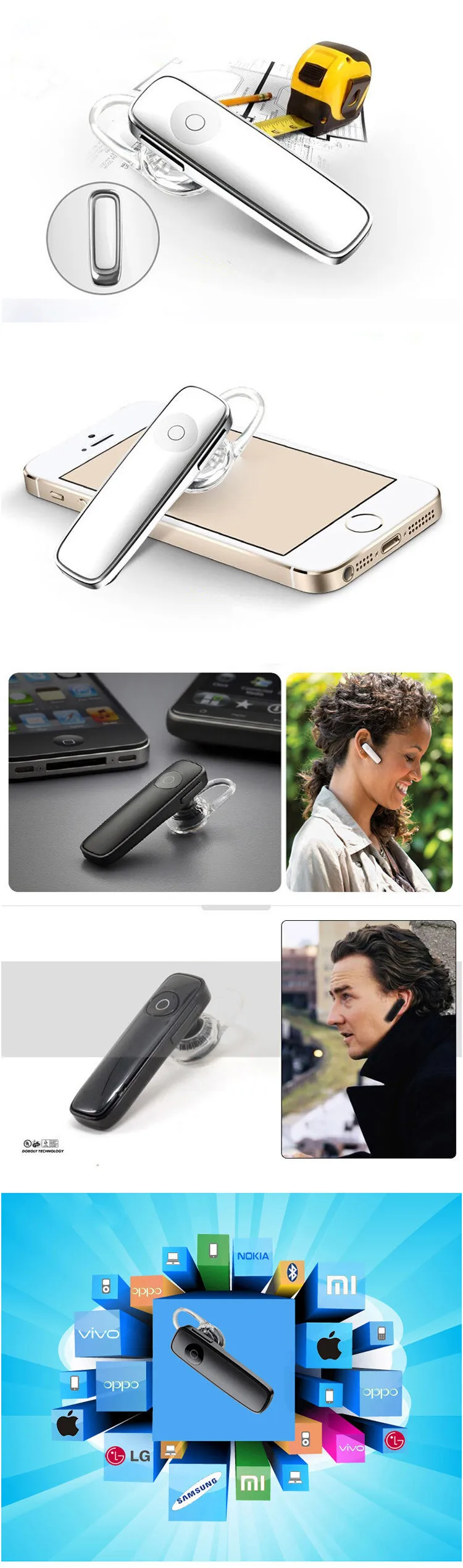 This bluetooth headset not only be able to answer and make phone calls, but also to listen to music.Beside, it support bluetooth self-timer.