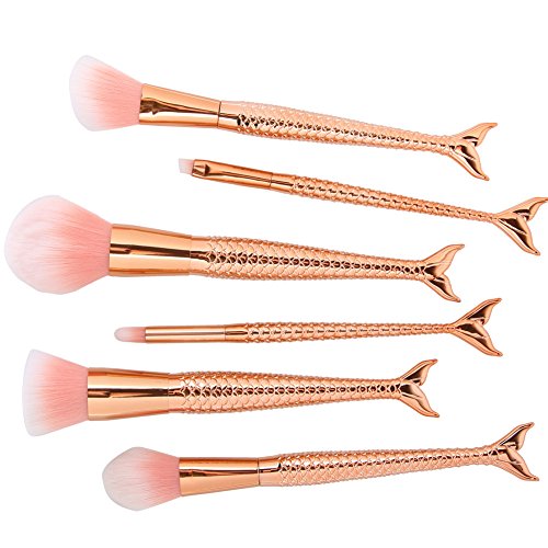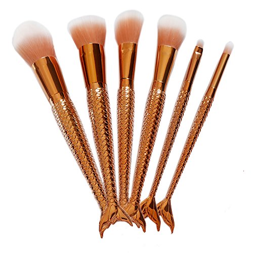 Coshine 6pcs/set Rose Gold Mermaid Nylon Hair Makeup Brush Set, for Foundation, Eyeshadow, Blush, Cream, Concealer, Loose Powder