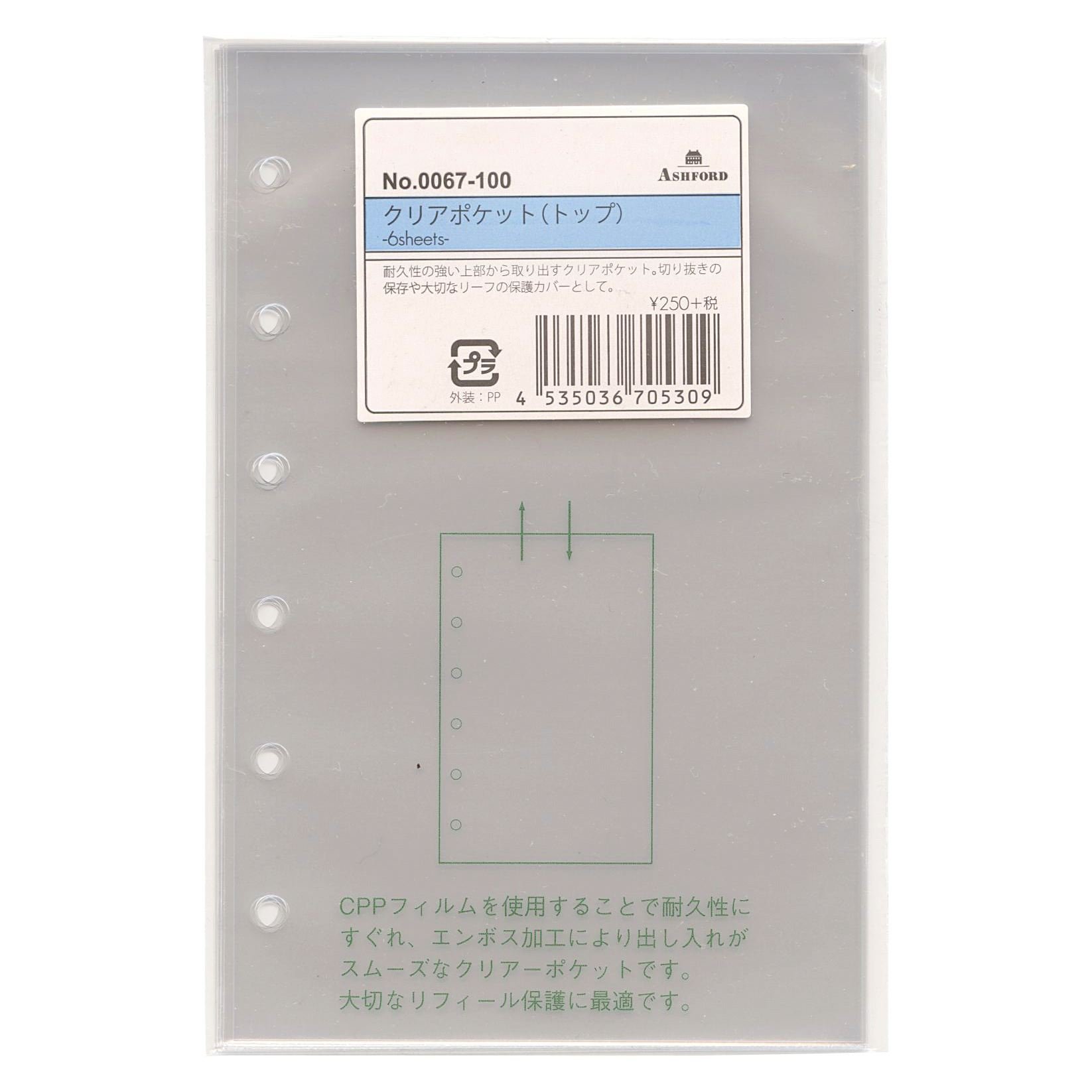 Ashford Mini size 6-hole personal organizer refill clear pocket 6 0067-100
