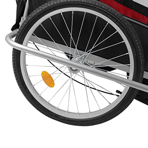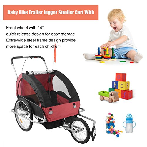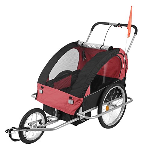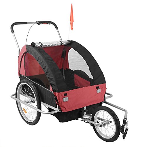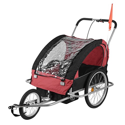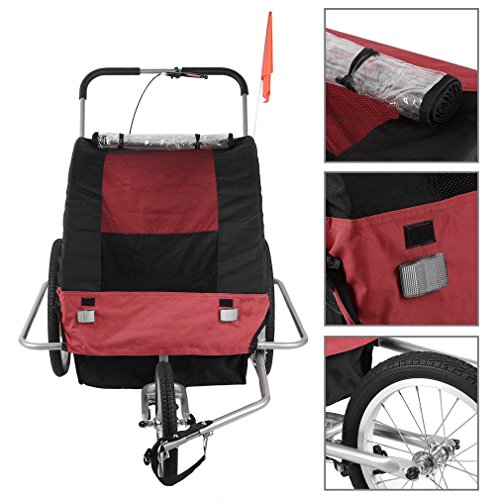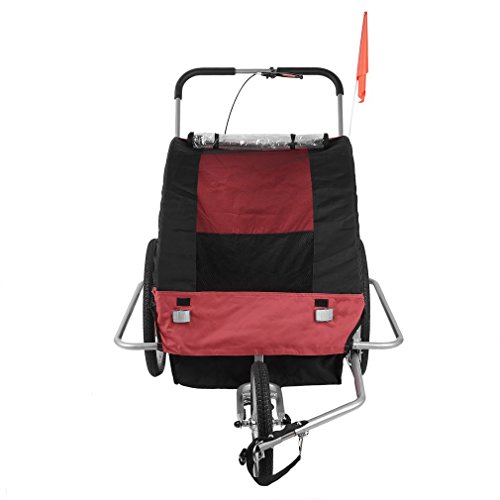 Specifications: Size:89*58*70cm Package size:78*22*64cm Color:black red Model:BT001 Material: Steel Tube Frame with 600D Oxford Cloth and PVC Transparent Top Film Max Speed of the trailer: 16km/h Weight Capacity: 88 lbs (2 Kids under Age 7) Package includes: 1 x Child Trailer With Storage Bag 1 x Safety Flag 1 x Trailer/Stroller Conversion Kit 1 x User Manual 0 |