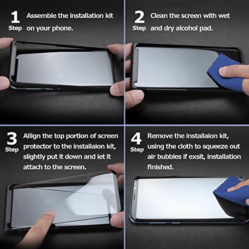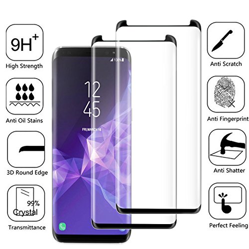 -. Feature : ◆Coverage Design - Curved tempered glass screen protector designed specifically for the Samsung Galaxy S9. / ◆3D Coverage protect the whole screen & Suitable for use with soft phone case to prevent edges-peeling up. / ◆Smudges and FingerP.R.Int Resistant - The hydrophobic oleophobic coating largely reduces smudges and fingerP.R.Int. You keep your screen clean by a simple wipe. / ◆ANTI-SCRATCH - Featuring with 9H hardness, effectively resists scratches by key, knife and any other sharp objects. / ◆Easy Installation - Bubble-Free adhesives for easy installation with adsorption function. No residue when removed for repeatable installation.