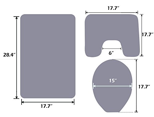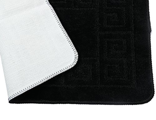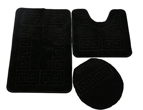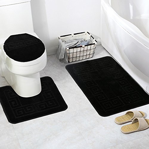 Pauwer 3 Piece Bath Rug Set Pattern Bathroom Rug 28.4"x17.7"/Contour Mat 17.7"x17.7"/ Lid Cover (Black)
