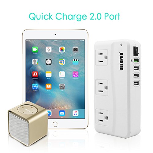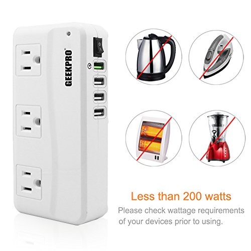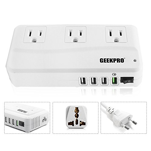 GEEKPRO V2 Voltage Converter covers all of your travel needs with 3 outlets and 3 ports and 1 qualcomm quick charge 2.0 USB ports, 3 international adapters lets you plug it to almost any country in the world.
