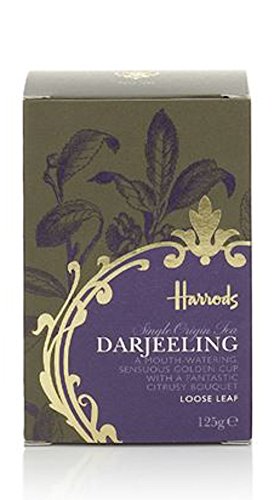-. Binding : Misc. -. Brand : Harrods Knightsbridge, London -. EAN : 5307933849573 -. Feature : No. 26 Darjeeling / Contains 125g Loose leaf Tea / Golden Cup with a fantastic citrusy Bouquet / Welcome to Shipped From London Quality British Products / USA Stocks for Faster shipping! brought to you by Shipped From London -. Label : Harrods Knightsbridge, London -. Manufacturer : Harrods Knightsbridge, London -. ProductGroup : Grocery -. ProductTypeName : GROCERY -. Publisher : Harrods Knightsbridge, London -. Size : 125g -. Studio : Harrods Knightsbridge, London -. Title : Harrods London. No. 26 Darjeeling, Loose Leaf Tea 125g (1 Pack) Seller Product Id Djlhtb0965 (Usa Stocks)