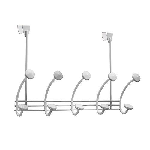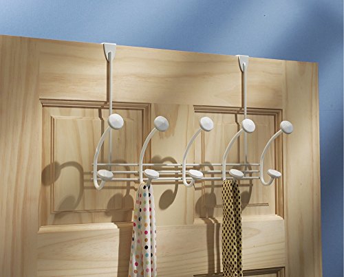 InterDesign Hex Over Door Storage Rack – Organizer Hooks for Coats, Hats, Robes, Clothes or Towels – 5 Dual Hooks, White