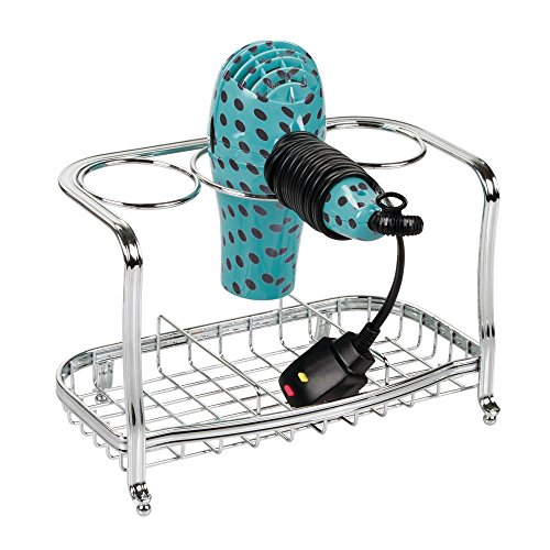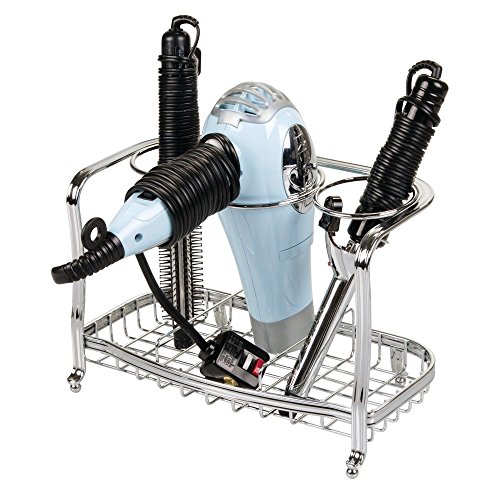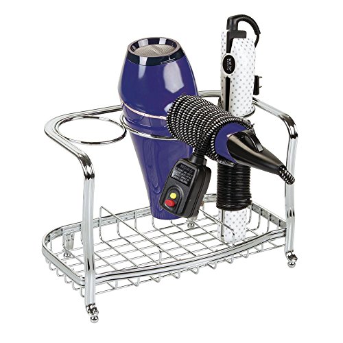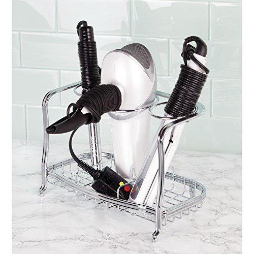 mDesign Bathroom Countertop Storage Organizer for Hair Dryer, Flat Irons, Curling Wands - Chrome