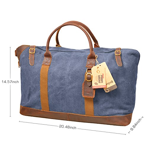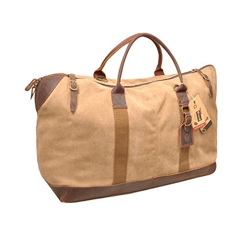 -. Feature : Dimensions(L x W x H): 52cm x 24cm x 40cm; 20.4 x 9.45 x 15.7inch, CUSTOMIZED SIZE ACCORDING TO DEMANDS. / Material: Genuine cowhide leather, hard-wearing canvas, cotton linning, high-quality accessories. / Design: Two zipped pockets for quick access item on bag's surface; One Spacious top zipped main compartment for your clothes; Two inner wall zipped pockets to store important items security; Two open slots for your phone, ticket, or passport. Lightweight for carry, adjustable and detachable shoulder strap, reinforced bottom design for set down on the ground. / Leather top handle; Thicken shoulder straps which is adjustable with a buckle, antique finish brass metal buckles / Brand Guarantee and Lifetime Service: High quality manufactured from S-ZONE with the perfect size for a weekend travel bag. A great companion for you all day, ideal for travel, weekend, sports.