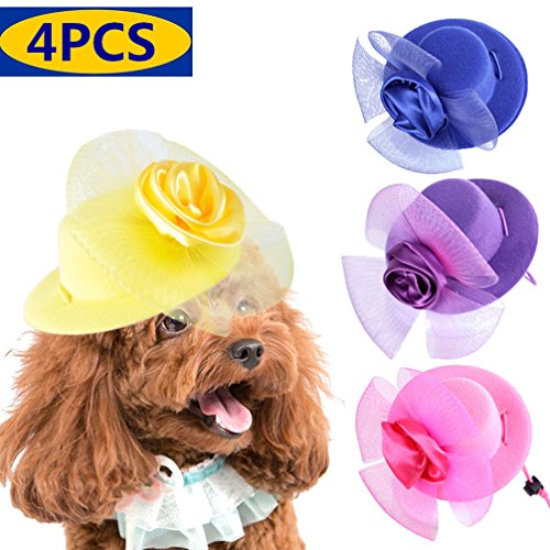 (Be Good)/Pet Supplies/Apparel Accessories/DIRECT FROM USA/4 Pcs Stylish Pet Party Costume Hats Dog Cat Birthday Headwear Beautiful Rose Hats for Small Do...