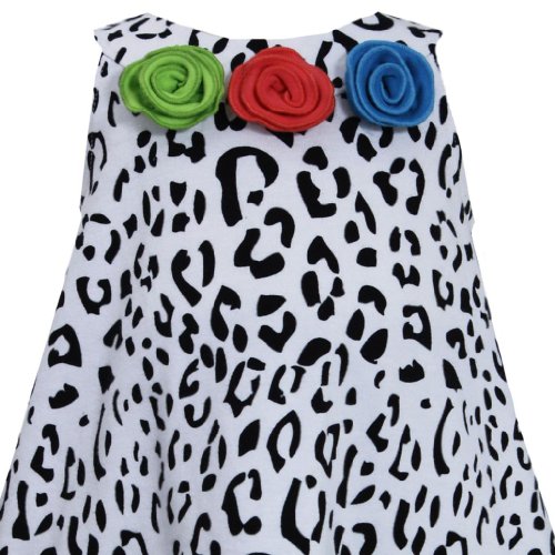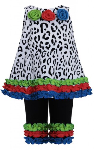 -. Feature : Sleeveless knit trapeze dress; black/white animal P.R.Int; rolled rosette trim at yoke neckline; triple ruffle trim at hem; key hole button closure / Black knit legging/pants; multicolor ruffle trim at cuffs; elastic waistband / Machine wash. Imported (Sri Lanka). / Matching/Coordinating sister styles available in sizes 3M-4T, reference style BNJ-14404R. / Needed size not available/sold-out? Find similar styles, search for: bnj-infant-and-toddler-pants-clothing-sets