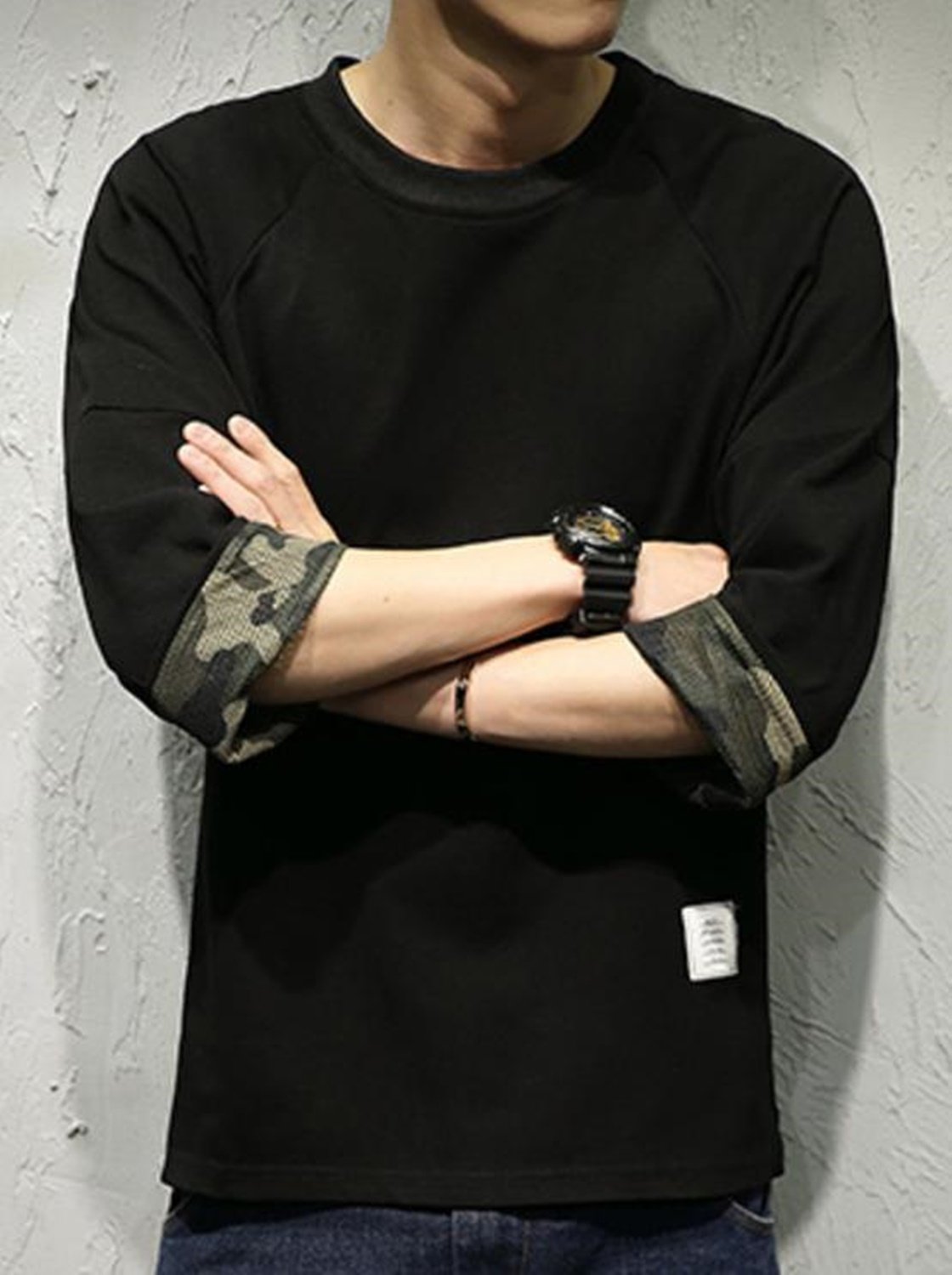 Men's tops three-quarter sleeve cut and sewn simple camouflage camouflage fashion.