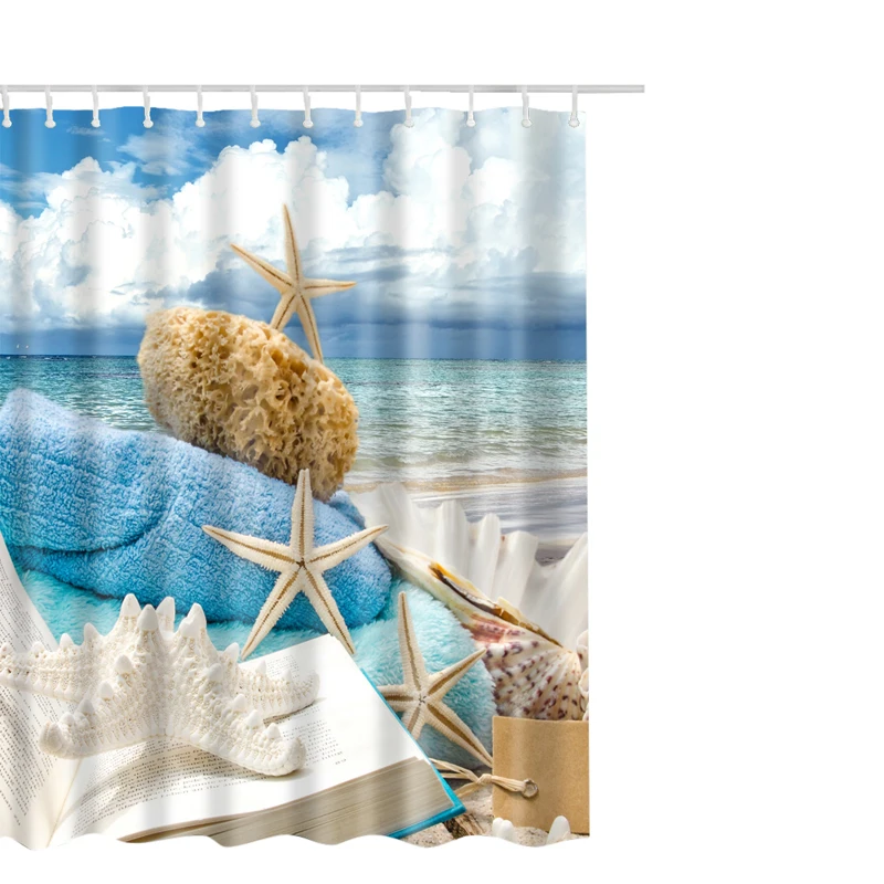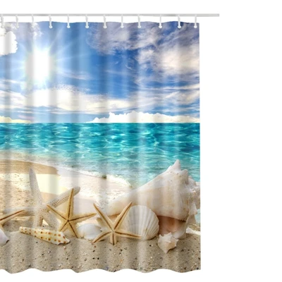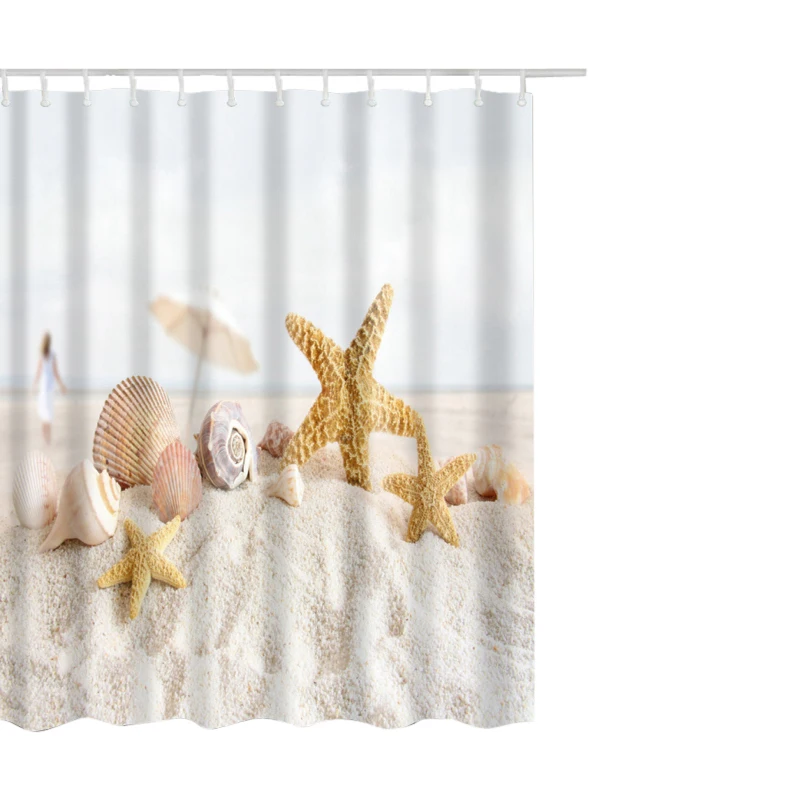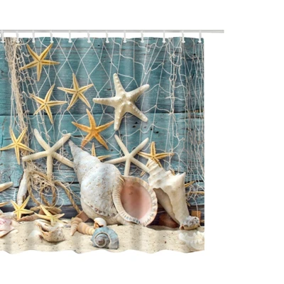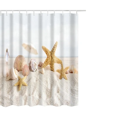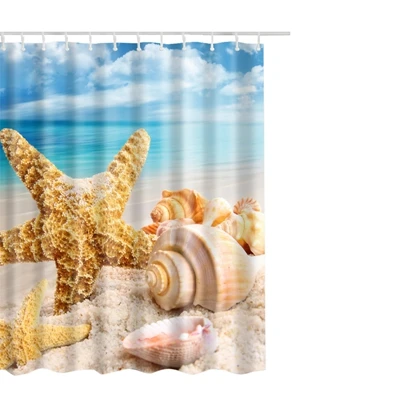 Style 1:Shell Printed Waterproof Shower Curtain
