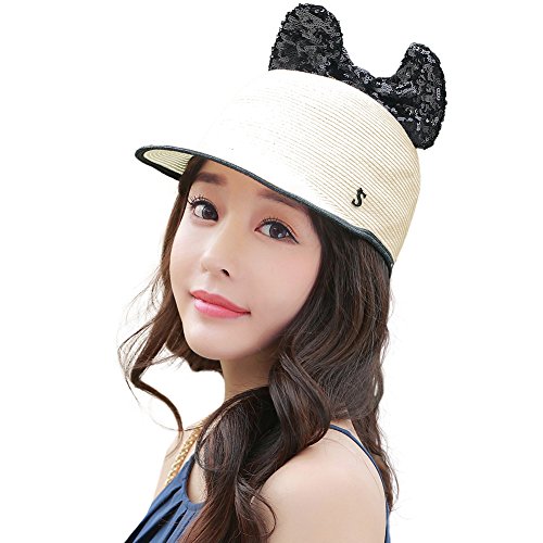 -. Feature : 周り:56-58cm(内側のテープでサイズ調整可) 高さ:12cm つば:8.5cm / ペーパー素材による春夏らしいサラッとした手触りと素材感と、柔らかな風合いです / 8.5㎝長いつば、お顔を日焼けから守る / 伝統的な織物野球帽から解放され、軽くて通気に優れるストロー素材はポイント / キラキラしたリボンは可愛さを増え、ディズニーなどの場合に最適!