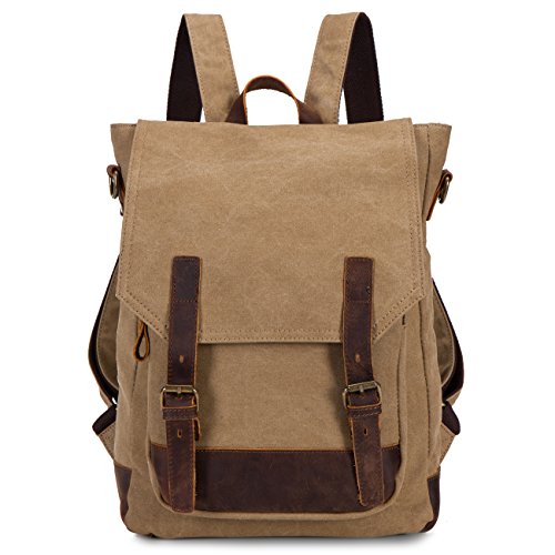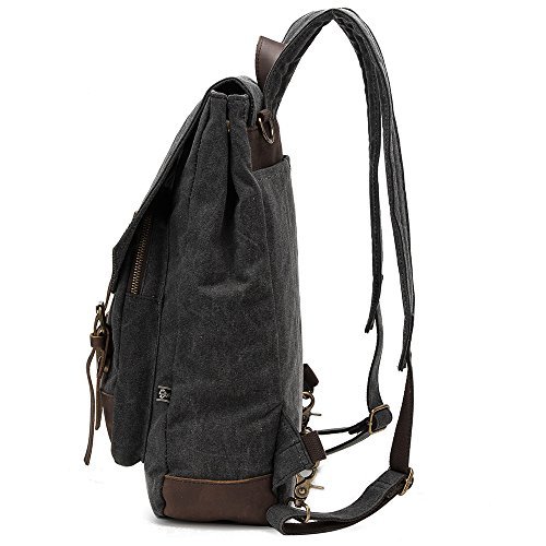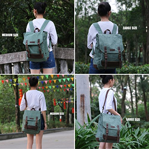 -. Feature : High density soft and thick cotton canvas and genuine leather trim. / Medium Size Bag Dimensions: 40 x 30 x 15cm (15.8 x 12 x 6 inch) / Specially added two button to enlarger top closure , more easily to put larger items into bag. / Casual life style,General use for Female & Male 2 way to carry, backpack or shoulder, / Back shoulder can easily be got off by using two additional buckle and hidden into two panels outside of backpack, more confortable when carrying long shoulder strape.