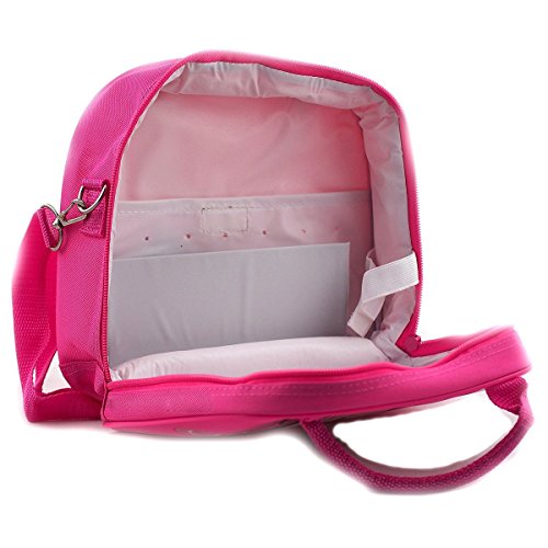 On back part of the actual bag it contains a see thru sleeve so your child can place a note card with his/her name so bag will not be misplaced!