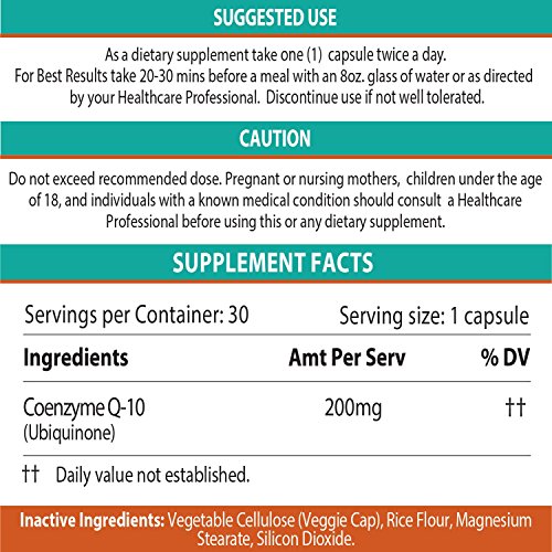 -. Brand : Bio Thrive Labs -. Feature : Potent 200 mg COQ10 supplement for maximum health boost / Helps maintain a strong and healthy heart, increase energy and vitality / Pure, premium quality COQ10 / Made in the US, pharmaceutical grade supplement, GMP approved and third party tested / Full Money Back Guarantee - No questions asked - buy now risk-free at a premium price! -. IsAdultProduct : 0 -. Label : Bio Thrive Labs -. LegalDisclaimer : *These statements have not been evaluated by the Food and Drug Administration. This product is not intended to diagnose, treat, or cure any disease. -. Manufacturer : Bio Thrive Labs -. MPN : Bio Thrive Labs CoQ10 -. PartNumber : Bio Thrive Labs CoQ10 -. ProductGroup : Health and Beauty -. ProductTypeName : PERSONAL_CARE_APPLIANCE -. Publisher : Bio Thrive Labs -. Studio : Bio Thrive Labs -. Title : High Efficiency COQ10 Supplement Pills - Coenzyme Q10 Capsules with 200mg of Pure Ubiquinone Protect Your Heart, Raise Energy Levels, Alleviate Pain and Improve Blood Pressure with No Side Effects!
