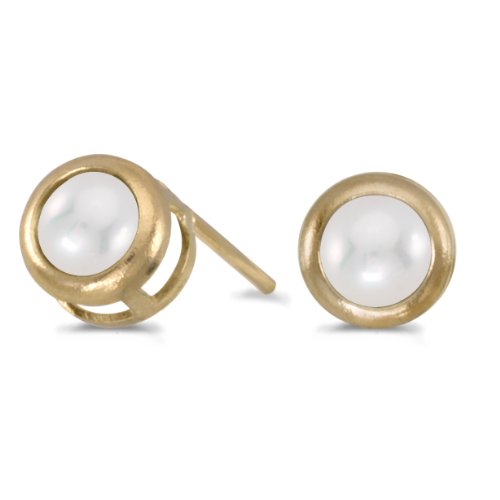 -. Title : 14k Yellow Gold Pearl Bezel Stud Earrings