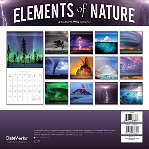 -. Binding : Office Product -. Brand : Trends International -. EAN : 0709257563824 -. Feature : 2017 Calendar featuring beautiful images for every month of the year. / Includes Holidays and Observances. / Keep your appointments and Birthdays organized in one place! / Perfect for office spaces, bedrooms, classrooms and more! / Makes a great gift for friends and family! -. Label : Trends International -. Manufacturer : Trends International -. MPN : 873017 -. NumberOfItems : 1 -. PackageQuantity : 1 -. PartNumber : 873017 -. ProductGroup : Office Product -. ProductTypeName : OFFICE_PRODUCTS -. Publisher : Trends International -. Studio : Trends International -. Title : 2017 Elements Of Nature Calendar - 11.5 x 11.5 Wall Calendar -. UPC : 709257563824