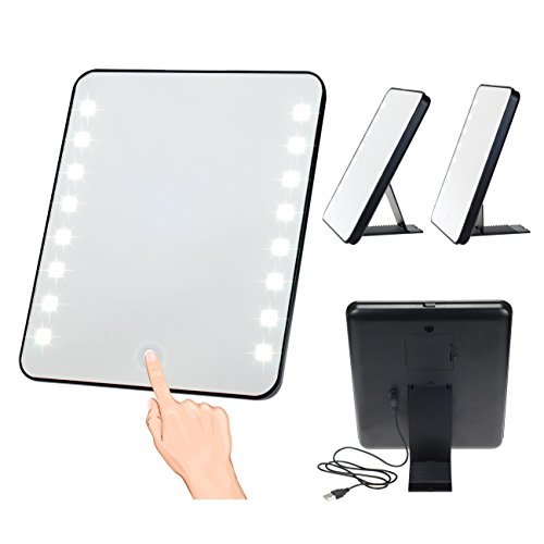 LED Lighted Makeup Mirror, Next Generation Powerful Bright Lighted Vanity Table Mirror, USB or Battery Operated Travel mirror (Black)