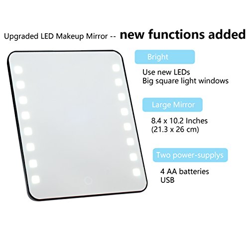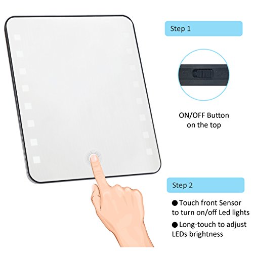 Large LED light windows (size: 0.4 X 0.4 inch), larger than the common LED mirror that with the round light window, the light can be fully used without any waste; Also this is touch sensor operating, brightness can be adjusted by touch;