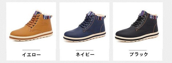 【サイズ】39、40、41、42、4339 24.5CM 40 25.0CM 41 25.5CM 42 26.0CM 43 26.5CM【素 材】アッパー:PUレザー ソール:ゴム【カラー】ブラック、ネイビー、イエロー【Item Comment】 ◆◆毎年大ヒットのイエローブーツ。◆◆ 男くささを演出する裏起毛スノーブーツ。◆◆ 靴内余すことなく敷き詰められたボアにより、柔らかく包まれているかのような着用感。◆◆ ベーシックなデザインながらも、機能性?実用性を重視しておりますので、寒い時期活躍すること間違いないでしょう。◆◆ 3色展開【ご注意】※撮影時に使用した洋服、アクセサリー等の内容は含まれません。※こちらの商品はシューズ単品の販売です。※モニターによって実物と多少色具合が異なって見える場合もございます。※撥水効果は、ご使用状況?保管状況等により低下する場合があります。※保管する時は、汚れを落として陰干ししてから、通気性の良い所へおしまい下さい。※火のそばに置くと軟化し変形することがあります。※毎日、ローテーションすることでシューズの寿命もアップします。