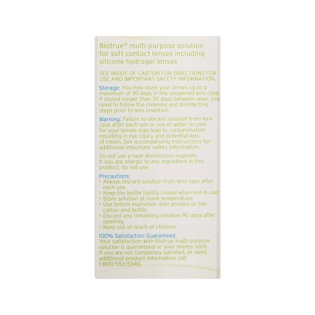 Studio : Biotrue Publisher : Biotrue Binding : Health and Beauty Product Description Biotrue multi-purpose solution is indicated as a rub regimen. This is the preferred method of cleaning recommended by eye care practitioners. If not wearing contact lenses immediately, store them in a closed lens case. Do not store your lenses in simple saline in place of Biotrue multi-purpose solution. Saline solution will not disinfect. 0