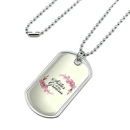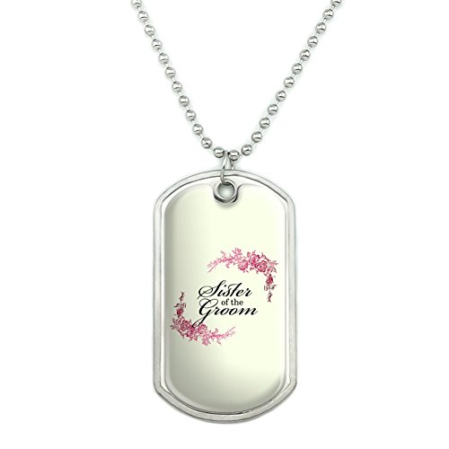 -. Binding : Jewelry -. Brand : Graphics and More -. Color : Metallic -. Department : womens -. Feature : Our dog tag features a fun, resin-topped printed graphic, as shown, expressing your unique interests and personality! / Want to get even more personal? The backside is perfect for engraving. (Unfortunately, we do not offer engraving services; please check with your local engraving shop!) / Dog tag is made of stainless steel and is approximately 2" x 1.1" in size. A 24" (61cm) adjustable chain is included. / A delightful way to acknowledge the groom's sister. / A Graphics and More product. -. Label : Graphics and More -. Manufacturer : Graphics and More -. MPN : DOGTAG.CHAIN.Z000780 -. NumberOfItems : 1 -. PartNumber : DOGTAG.CHAIN.Z000780 -. ProductGroup : Jewelry -. ProductTypeName : FASHIONOTHER -. Publisher : Graphics and More -. Studio : Graphics and More -. Title : Wedding Floral Sister of the Groom Military Dog Tag Pendant Necklace with Chain