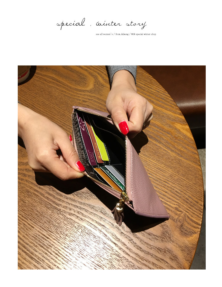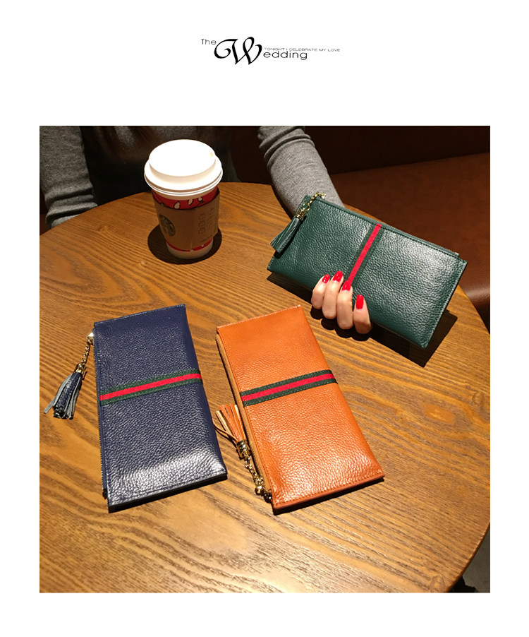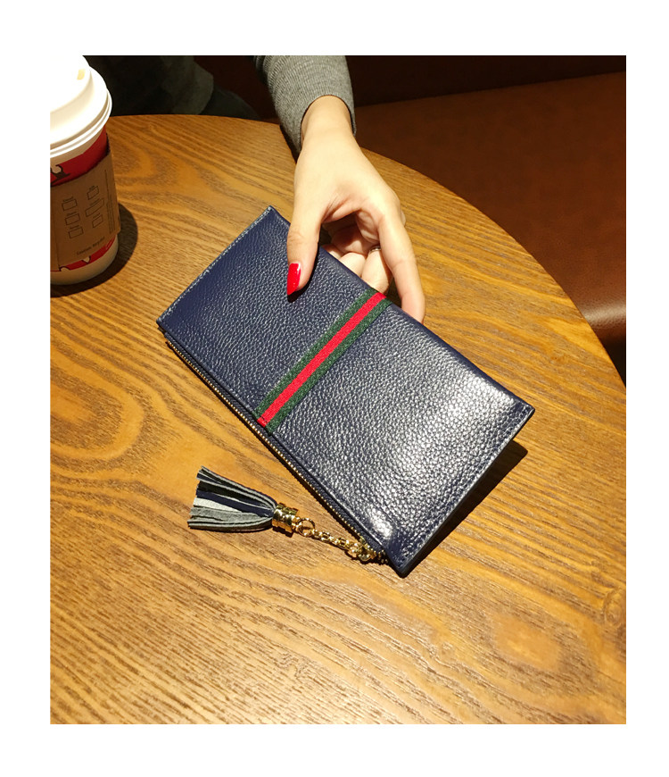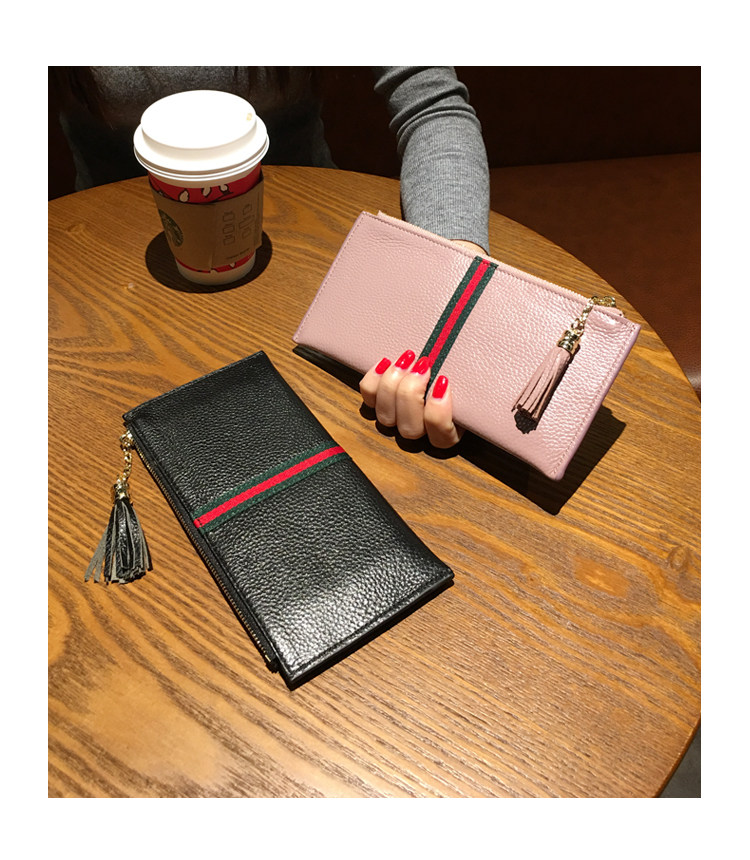 新款头层牛皮超薄款韩版女士长款钱包真皮简约时尚钱夹软皮