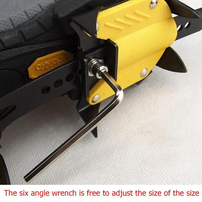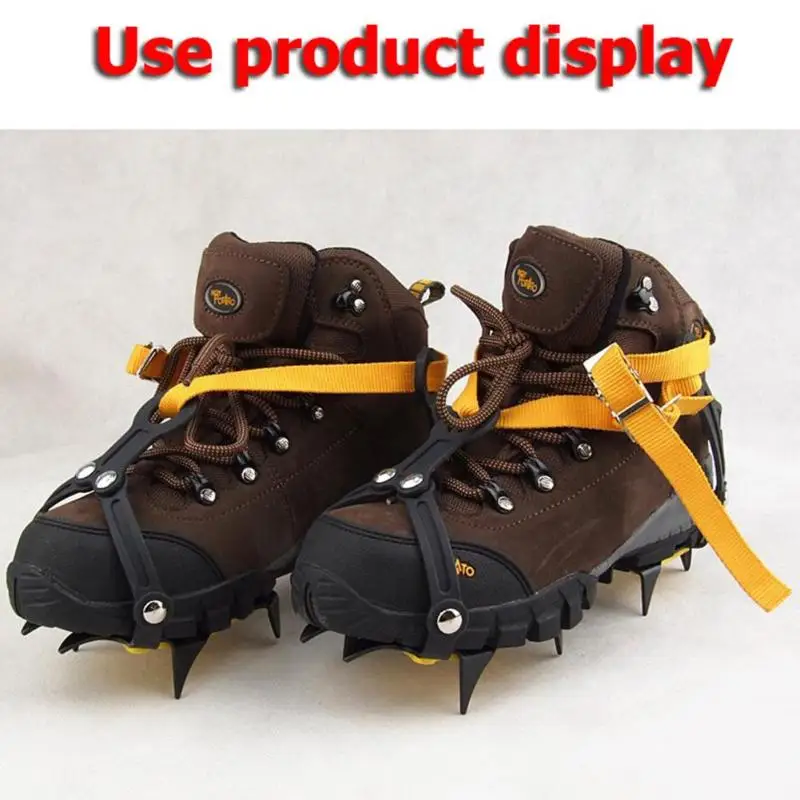 10 Studs Anti-Skid Stainless Steel Snow Ice Climbing Shoe Spikes Grips Crampons Size Adjustable Cleats Overshoes Features: 1. Ten-toothed crampons, firm, stable, cold-resistant, not broken 2. Send hex wrench, you can adjust the size freely (the same applies for 48 yards shoes) 3. Special Oxford cloth for delivery, easy to carry 4. Adjustable safety buckle, made of manganese steel, chrome-plated, durable 5. The strap is made of polypropylene yarn with high fiber thickness and high density. It can be stretched, elastic, wear-resistant and anti-corrosive. Specifications: Material: Stainless steel Color: black + yellow bag Size: 200mm*100mm*100mm/7.87*3.93*3.93'' Net weight: 621g Gross weight: 621g Suitable for: outdoor adventure, mountain climbing, rock climbing, snow walking