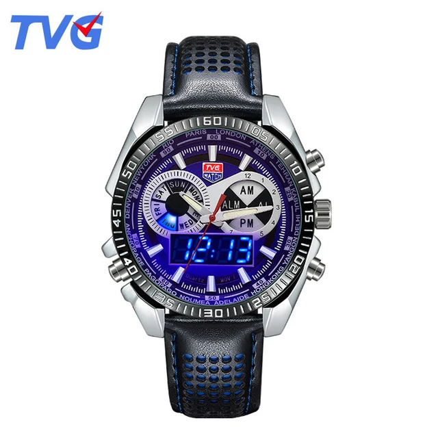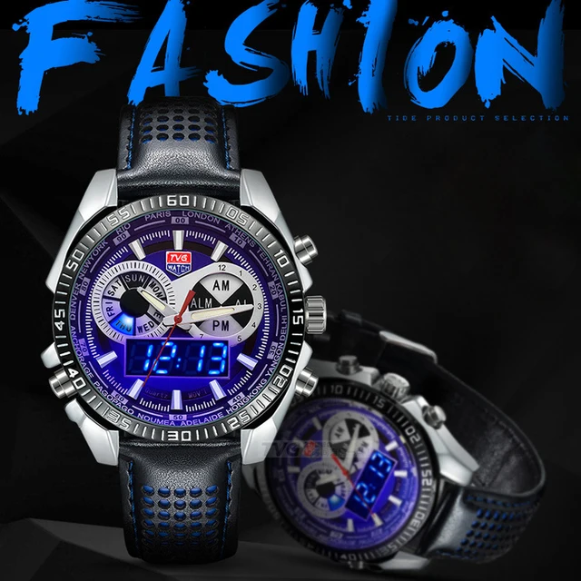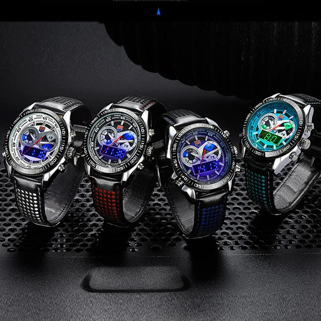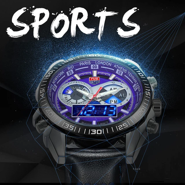 | [해외] 뜨거운 판매 듀얼 디스플레이 남성 시계 브랜드 방수 디지털 쿼츠 시계 패션 스포츠 군사 시계 relogio masculino |