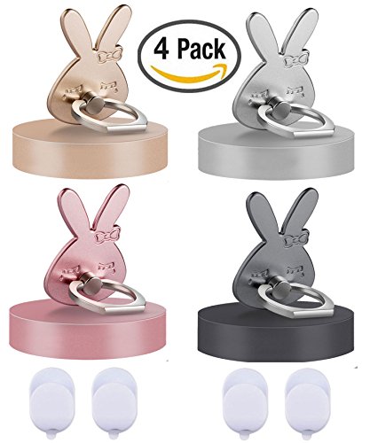 Phone ring stand holder 4 package Metal Finger Grip Stand Holder Ring,Car Mount 360°Rotation Phone Ring Grip for Samsung Galaxy iphone Tablet PC Smartphone phone ring stent (rabbit)