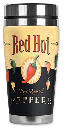 Mugzie 399-MAX "Red Hot Peppers" Stainless Steel Travel Mug with Insulated Wetsuit Cover, 20 oz, Black