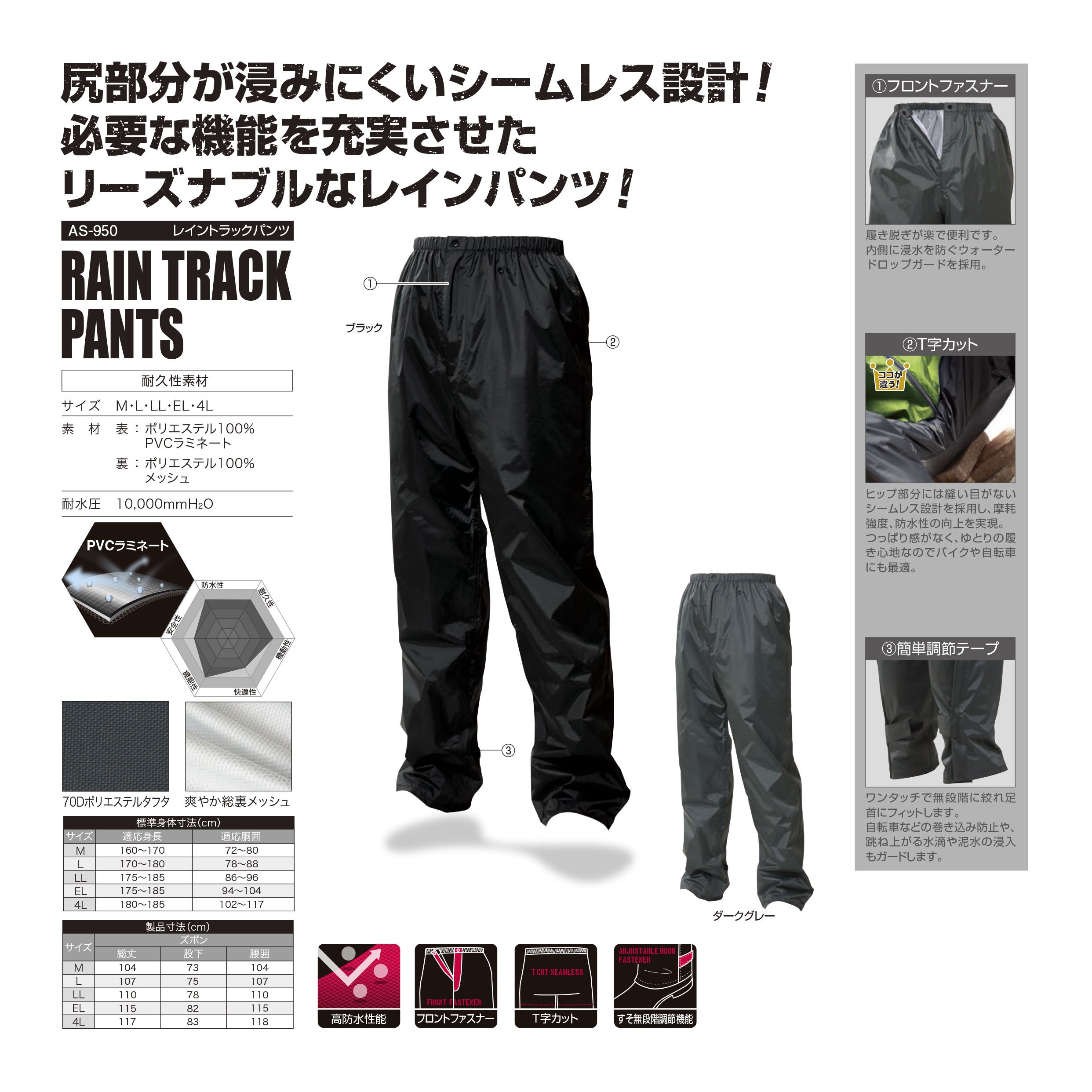 · 4 L / height 180 to 185, waist circumference 102 to 117