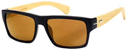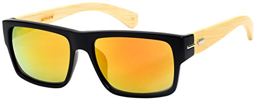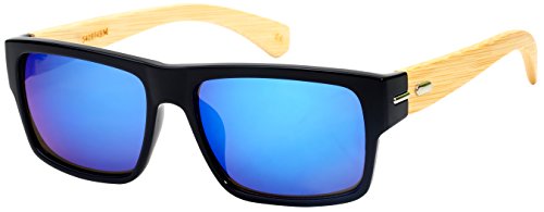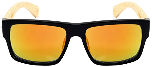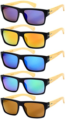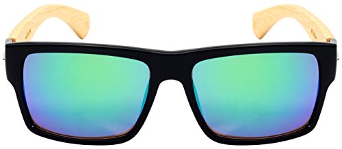 Product Description These Edge I-Wear Bamboo Retro Square Mirror Sunglasses presented by "Treez" feature real bamboo temples. These lightweight sunglasses are at the top of their class based on style, quality, comfort and affordability. The high quality bamboo features beautiful rich colors with reinforced metal hinges. The vibrant color mirrored lenses offer UV400 Sun Protection. Available in five different frame and lens colors. 0