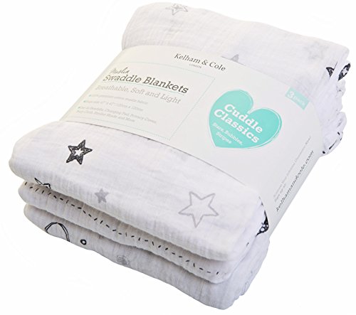 -. Title : Kelham and Cole Muslin Baby Swaddle Blankets (White/Grey) 3 Pack. Extra Large 47 X 47 Inch Softest and Breathable Gender Neutral Cotton Swaddles - Multipurpose Swaddling and Receiving Blankets