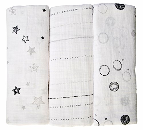 -. Feature : SPECIAL P.R.ICE - get our signature muslin swaddles for just $21.50. Offer must end soon / BABY SAFE AND SUPER SOFT - our premium muslin swaddles are made from the softest cotton, making them light weight, breathable and gentle on infant skin. They are perfect for wrapping babies snugly, in summer and winter, keeping them cozy and reducing the risk of overheating / EXTRA LARGE FOR EASY SWADDLING - Measuring a generous 47 inch by 47 inch our huge swaddle blankets are big enough to wrap even the largest of newborn babies / ADORABLE UNISEX DESIGNS - Swaddle your baby in style with our 3 cute and understated Stars, Bubbles and Stripes gender neutral patterns, created at our studio in London, England. Our luxurious blankets are ideal baby shower gifts for boys, girls and stylish moms / MULTIPURPOSE AND DURABLE - Super versatile, they make perfect receiving blankets, stroller shades, burp cloths, changing pads, nursing covers, and play mats for tummy time. They are so useful and strong, you can expect to use them all the way to toddler-hood