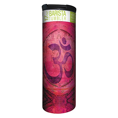 Tree-Free Greetings Pink Om Vacuum Insulated Travel Coffee Tumbler, 17 Ounce Stainless Steel Mug, New Age Gift for Yoga Lovers and Yogis (BT21148)