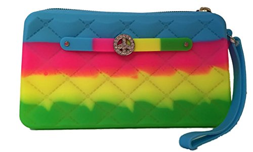 -. Feature : Rainbow Gummy Wristlet and Peace Sign Jewel / 100% Food Grade Silicone which is safe for kids / Zipper closure / Water Resistant / Measures approx. 6.5"L x 1"W x 3.5"H