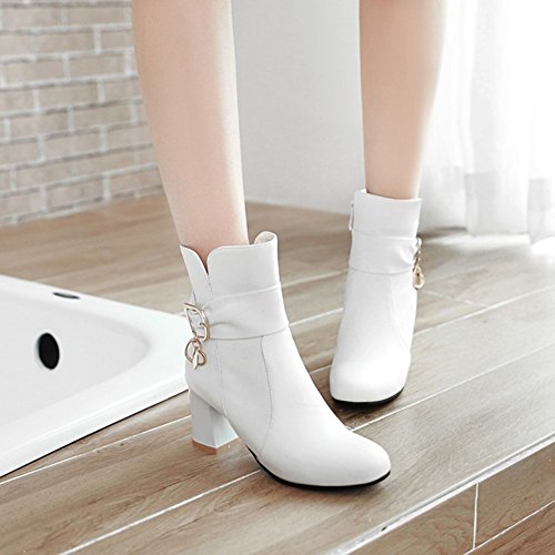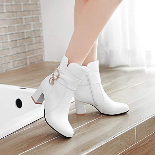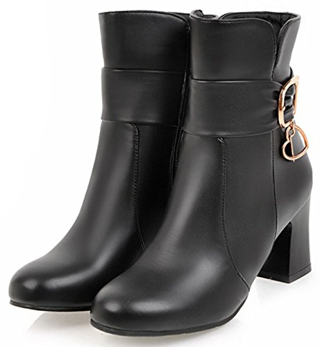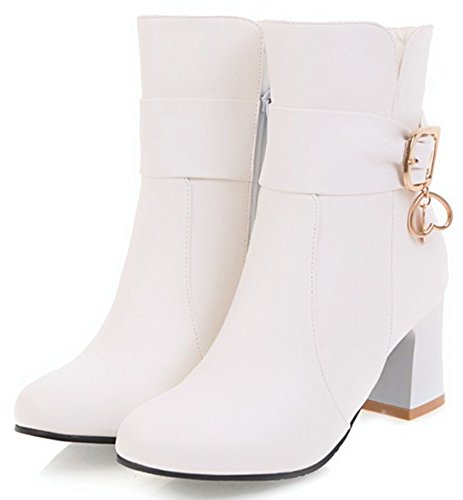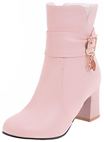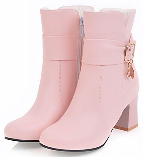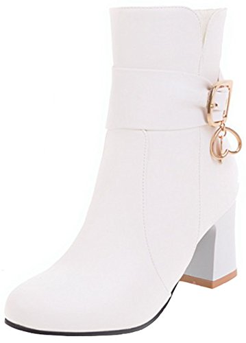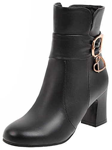 (Mofri)/Women's/Boots/DIRECT FROM USA/Mofri Women's Fashion Buckle Belt Block Medium Heel Ankle Booties Round Toe Side Zipper Short Boots