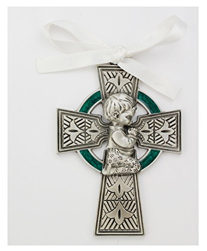 Baby Boy Crib Celtic Cross Silver and Green with White Ribbon