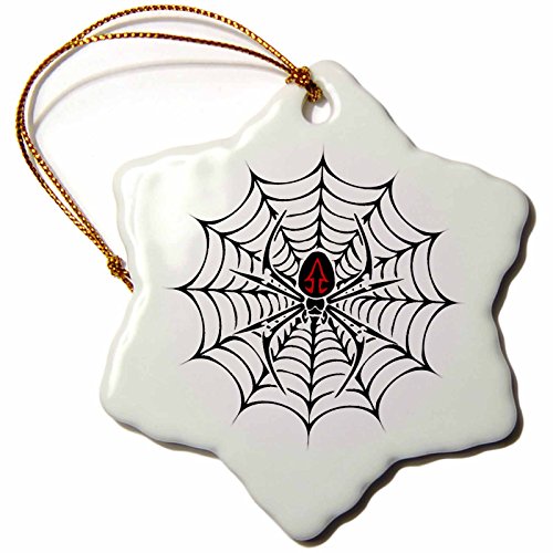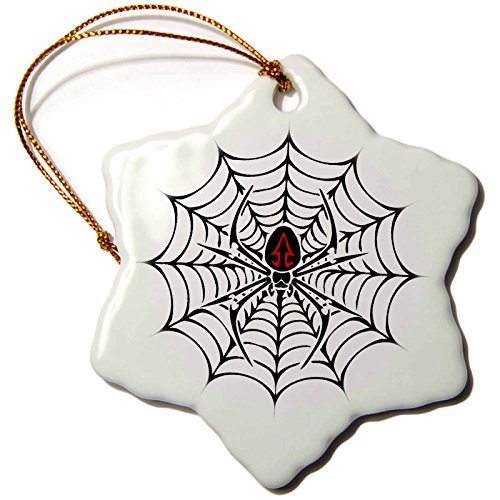 3dRose orn_58923_1 Black Widow Spider in a Web Snowflake Ornament, Porcelain, 3-Inch