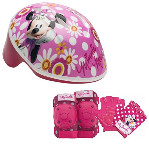 -. Brand : Disney -. Color : Multi -. Department : Girls -. EAN : 0638317559593 -. Feature : 7 piece set includes helmet, (2) knee pads, (2) elbow pads & (2) gloves / Padded helmet opening measures 8" x 6" / Designed with Minnie Mouse graphics and logos / Great accessory set for skate, bike or scooter / For toddlers and small children ages 3+ -. IsAutographed : 0 -. IsMemorabilia : 0 -. Label : Bell -. Manufacturer : Bell -. MPN : 1001134451 -. PackageQuantity : 1 -. PartNumber : 1001134451 -. ProductGroup : Sports -. ProductTypeName : OUTDOOR_RECREATION_PRODUCT -. Publisher : Bell -. Size : small -. Studio : Bell -. Title : Disney Girls Minnie Mouse Toddler Skate / Bike Helmet Pads & Gloves - 7 Piece Set -. UPC : 638317559593